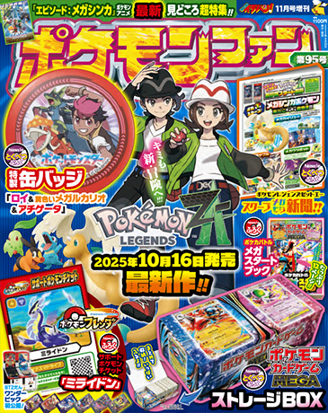 特別ふろくは、アニメ「ポケットモンスター」特製缶バッジ「ロイ&黄色いメガルカリオ&アチゲータ」、「ポケモンカードゲーム MEGA」ストレージBOX、『ポケモンレジェンズ Z-A』スクープメガもり新聞など、もりだくさん!!